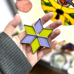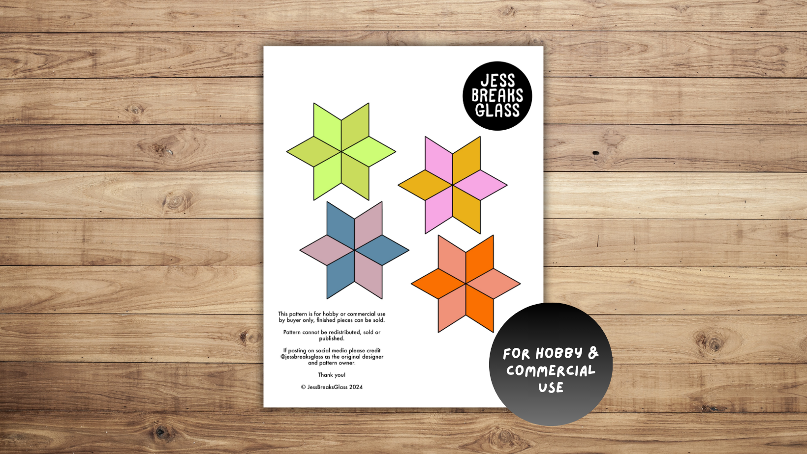 When you’re and artist and maker, it’s never too early to start prepping for the holiday markets and gifts! This simple mitered star design has been used in quilting for decades and has and is great way to play with glass texture, transparency and color.
