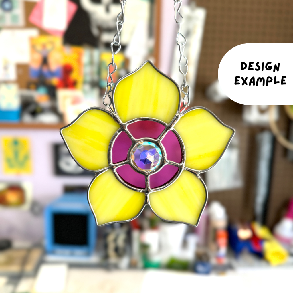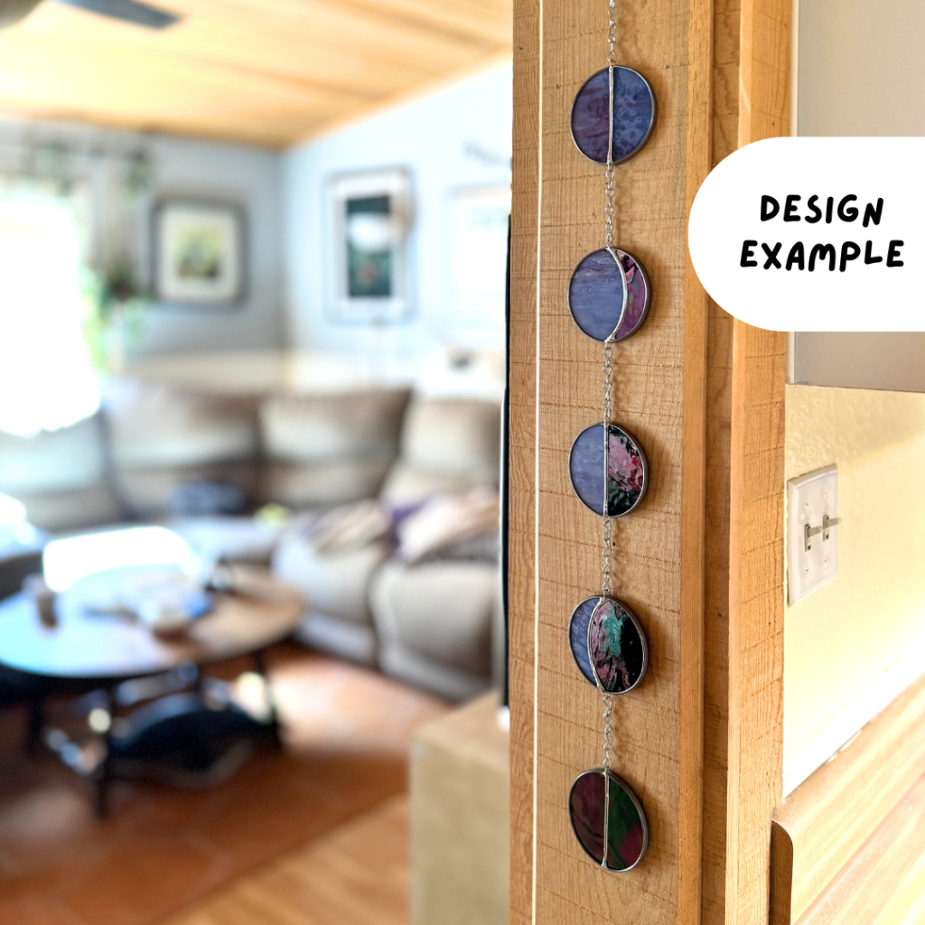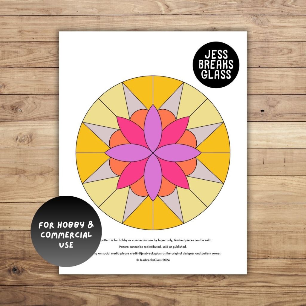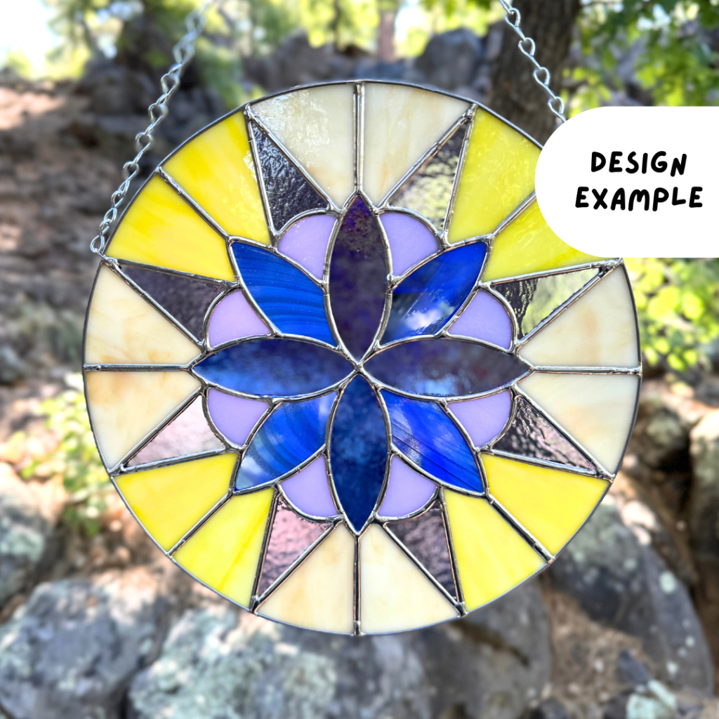 Happy Friday! This week I released three new stained glass patterns. One is a moon phase garland with assembly guide, a 10″ mandala design with a bonus PNG file for resizing, and a jewel flower suncatcher designed with 25mm jewels in mind for the centers!